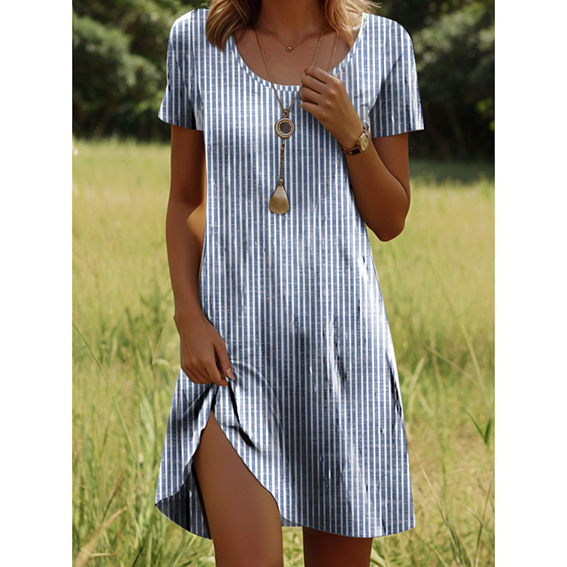 Women's Midi Dress Casual Dress Summer Dress Fashion Modern Daily Beach Weekend Regular Fit Flower Short Sleeve Crew Neck Blue White Summer Spring
