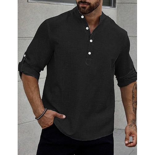 Per uomo Camicia di lino Camicia popover Camicia casual Camicia da Spiaggia Camicia con colletto alla coreana Semplice Casuale Abbigliamento casual alla moda Nero Bianco Rosa Azzurro cielo Manica