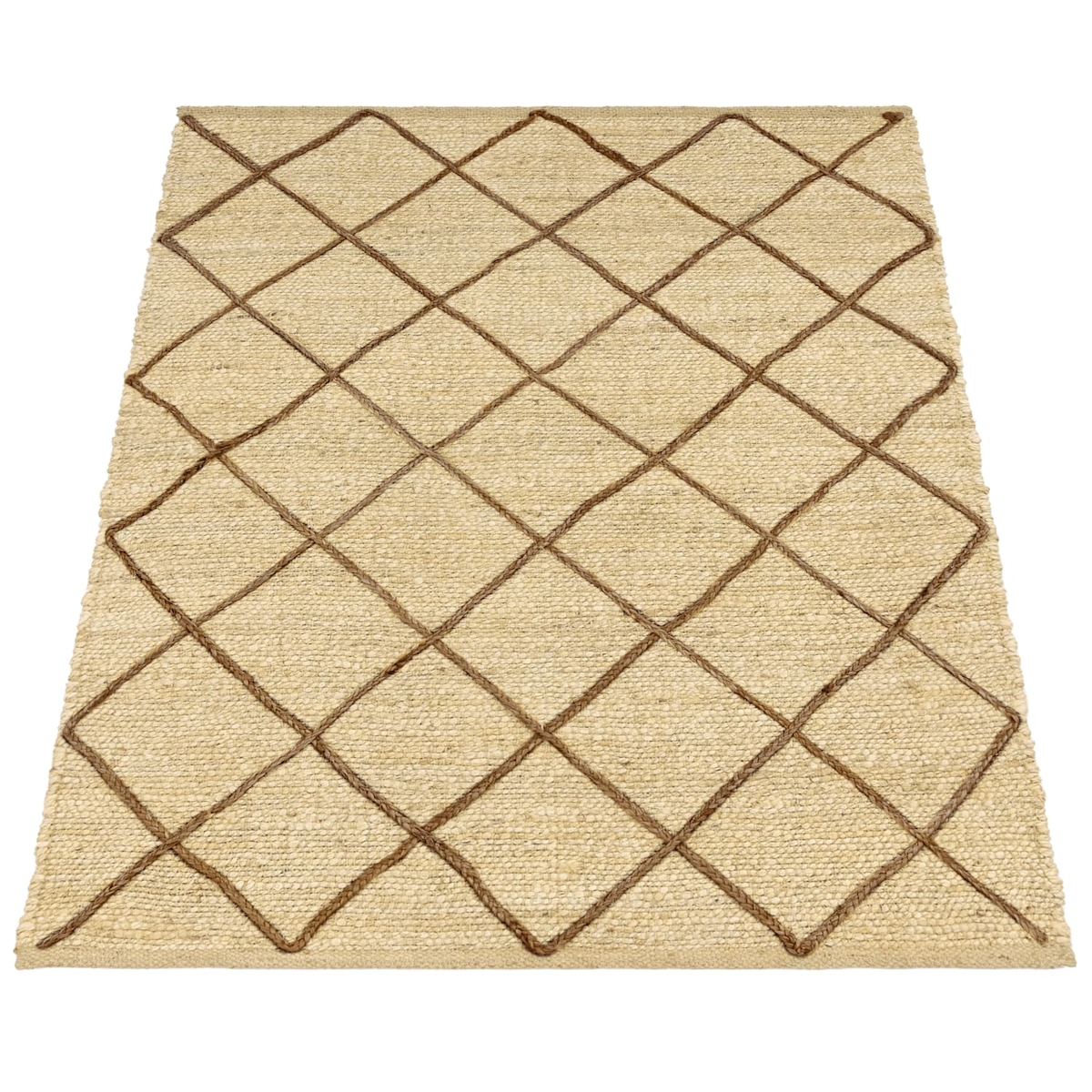 KADIMA DESIGN Jute Teppich Rauten wendbar schmutzabweisend Creme Rechteckig 120x170 | 100% Jute, Rücken aus Jute | Florhöhe: 9 mm | nur Ausklopfbar