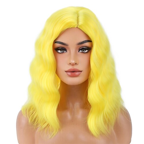 Parrucca di Carnevale Viola Verde Giallo Ondulato Corto Parrucca sintetica da festival Martedì grasso Parata Capelli per costumi da cosplay per Da donna