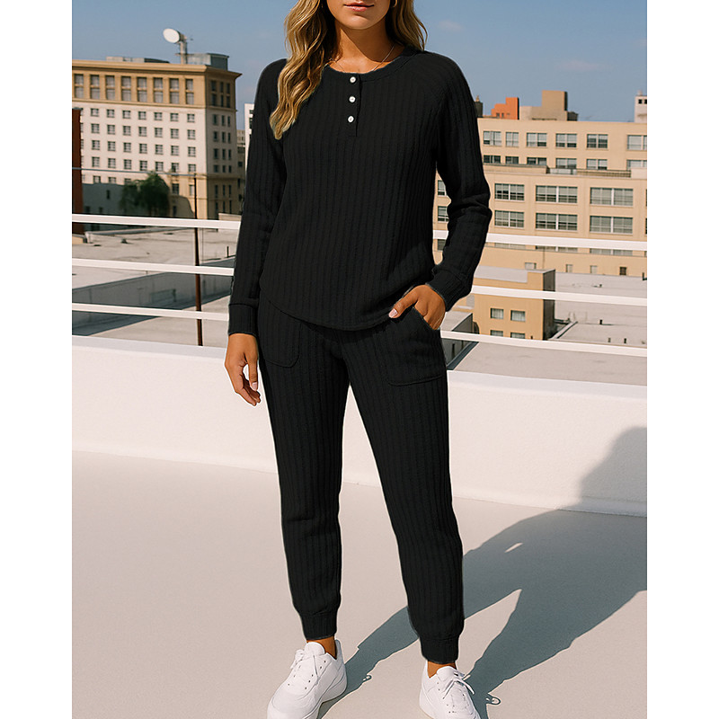 Women's 2 Piece Tracksuit Pullover Sweatshirt Sweatsuit Sets with Pocket Solid Colored Clothing Suit Fall Black Pink Workout Outdoor Travel High Waist Lightweight Fashion Long Sleeve Sport Activewear