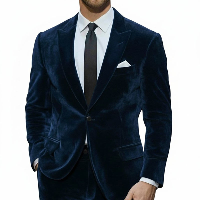 Men's Casual Party Velvet Suits Peaked Lapel Blue green Yellow Party Solid Colored Tailored Fit 2 Piece Single Breasted One-button