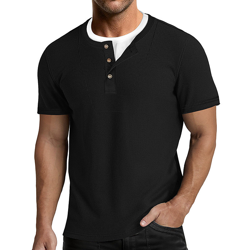 Men's Waffle Henley Shirt Tee Cotton Blend T-Shirt Short Sleeve Color Block Plain Fashion Designer Casual Color Block Buttons Fake two piece Crew Neck Henley Casual Daily Outdoor Summer All Seasons