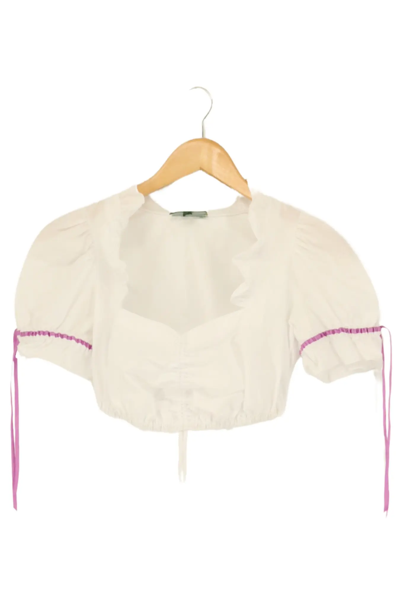 WIESNKÖNIG Trachtenbluse Weiß Lila Akzente Gr. 32 Baumwolle