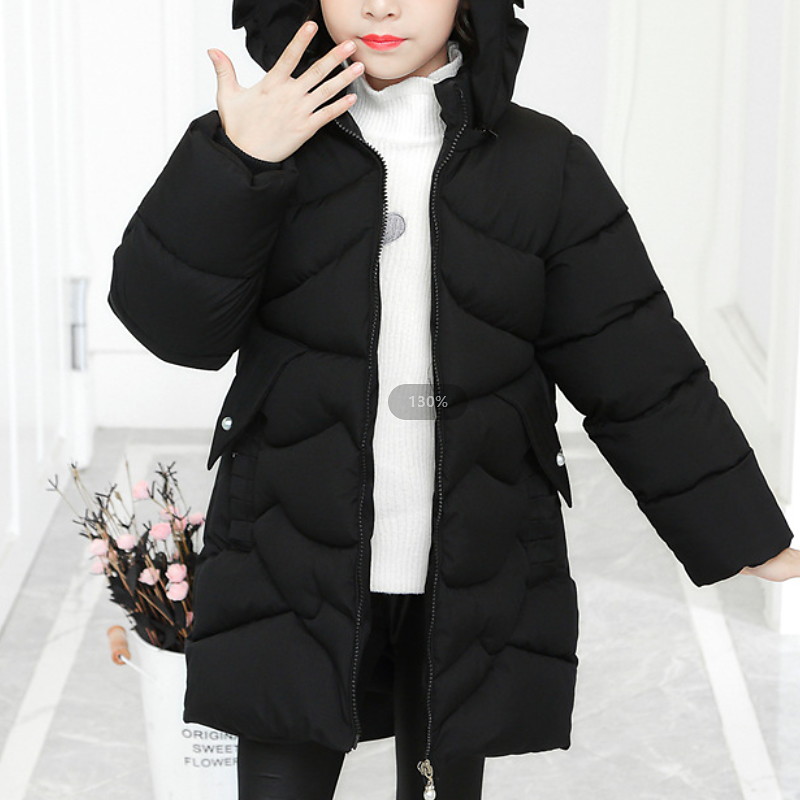 Kids Girls' Down Long Sleeve Black Red Plain Ruffle Winter Adorable Sport 3-8 Years / School / Cute / Cotton