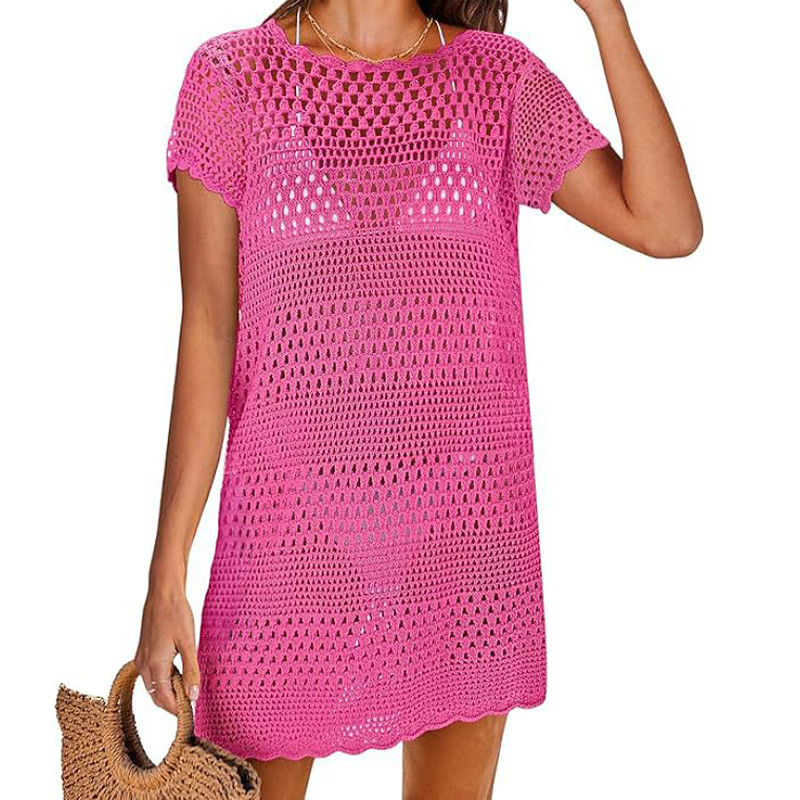 Women's Swimwear Cover Up Swimsuit Cut Out Crochet Vacation Beach Wear Plain Round Neck Short Sleeves Bathing Suits