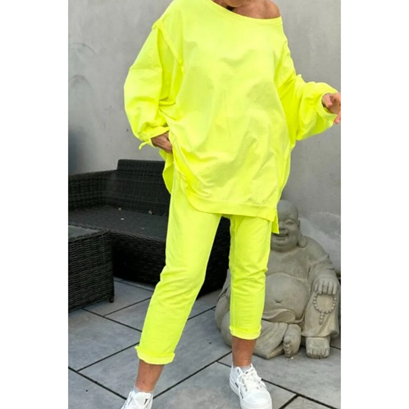 Women's Fashion Streetwear Pants Sets Bolero Top Long Sleeve Crew Neck Plain Casual Daily Outdoor Black Yellow Purple Spring Loose Fit