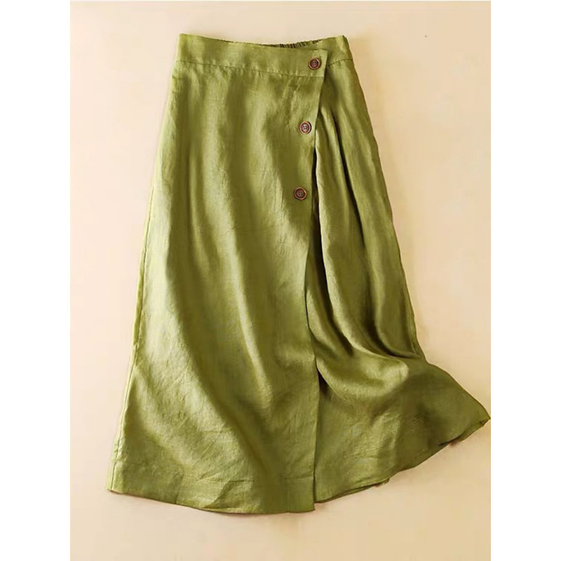 Women's Skirt A Line Fashion Casual Midi High Waist Skirts Plain Ruched Stretchy Daily Street Black White Green Khaki Summer Linen