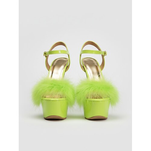 Sandali da donna bianchi con plateau e tacco alto e cinturino in pelliccia, scarpe sexy con tacco a spillo per feste, vita notturna e club. look da sera di grande effetto