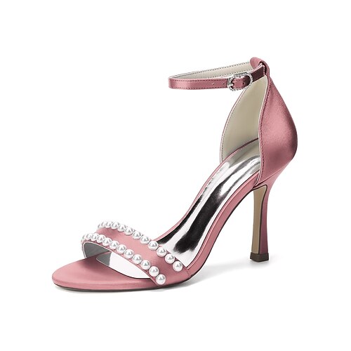 sandali da donna con tacco alto in argento - eleganti scarpe da sposa con cinturino in perle per matrimoni in giardino