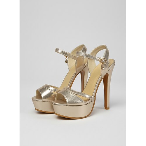 Scarpe con tacco a spillo dorate da donna con decorazioni floreali - scarpe glamour con tacco alto per feste, vita notturna ed eventi speciali