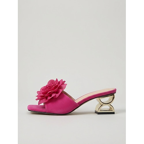 Sandali rosa da donna con tacco alto e stampa floreale, scarpe eleganti slip-on a punta aperta per cene in resort e vacanze. eventi serali estivi