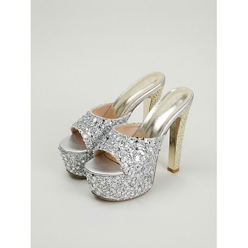 Sandali da donna blu glitterati con plateau e tacco alto, scarpe da festa con tacco a spillo a punta aperta per la vita notturna e le serate in discoteca. look da sera glamour