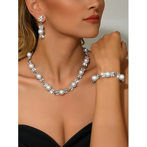 set di gioielli da donna in oro e perle, collana, orecchini e bracciale con strass, elegante stile vintage per sala da ballo feste formali