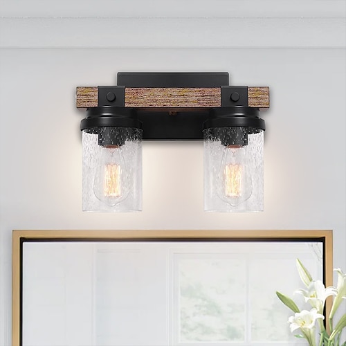 lampade da bagno in fattoria, luci da bagno a 1/2/3 luci su specchio, luci da toeletta in legno rustico, paralume in vetro semi per bagno, applique da parete vintage per bagno, soggiorno, corridoio,