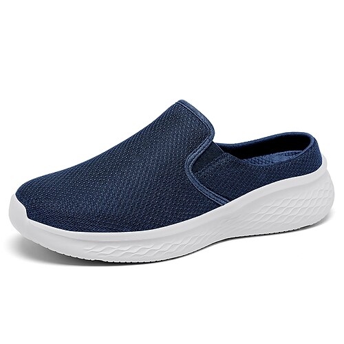 Scarpe da ginnastica slip-on da uomo blu navy in maglia, leggere, traspiranti e comode per camminare tutti i giorni, viaggiare, spostarsi, per il tempo libero all'aperto, per le attività del fine settimana e per uno stile sportivo casual.