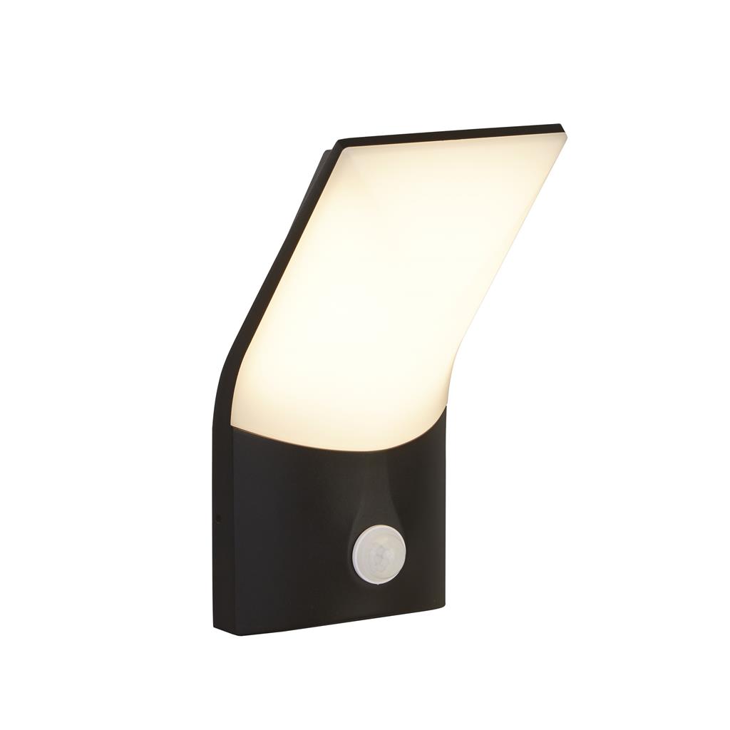 Searchlight Copenhagen - buiten wandlamp met sensor - 12 x 25 cm - 10W LED incl. - IP54 - zwart en opaal
