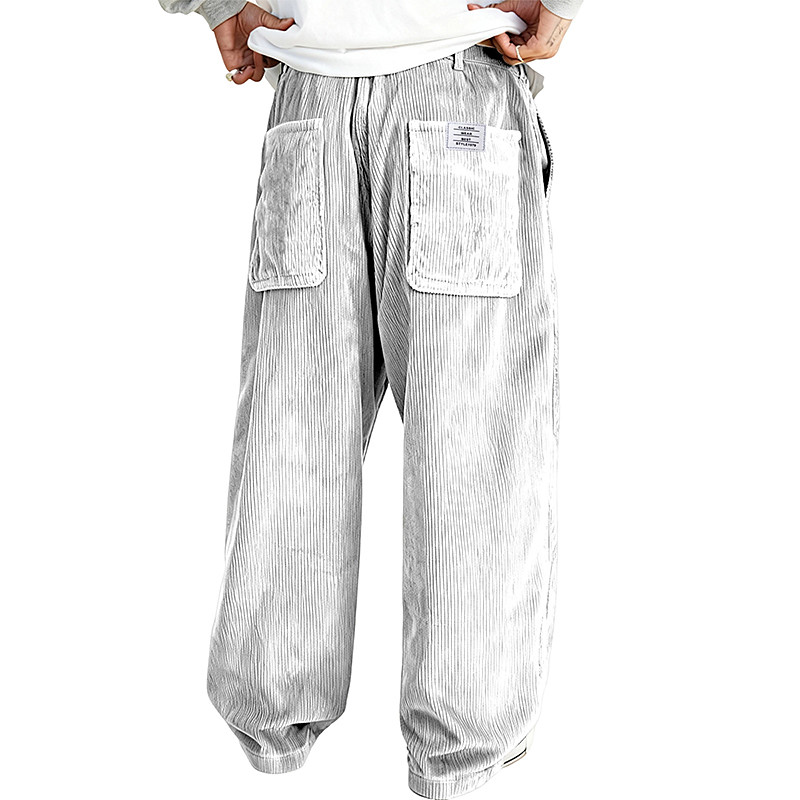 Men's Trousers Corduroy Pants Baggy Pants Casual Pants Pocket Elastic Waist Straight Leg Solid Color Comfort Full Length Daily Outdoor Streetwear Vacation Fashion Black White Micro-elastic