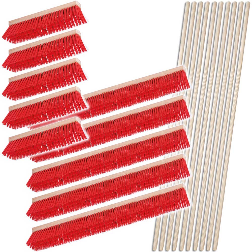 BRB Besen-Set, 10x Straßenbesen, Kunststoffborsten, 5X 400 mm, 5X 1.000 mm, 10x Sattelholz-Besenstiel