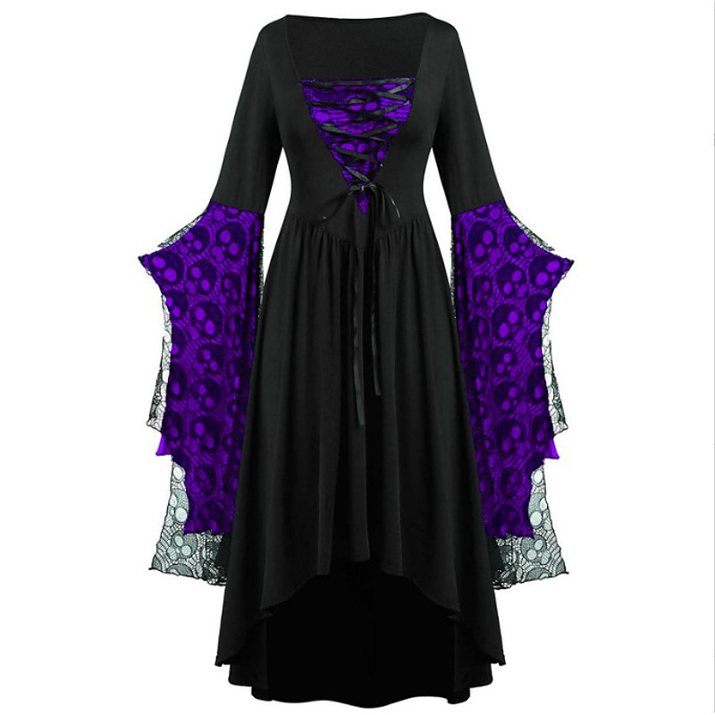 Retro Vintage Punk Gothic Medieval Dress Masquerade Witch Witches Skull Fancy Dress Women's Fantasy Steampunk Walpurgis Night Halloween Carnival Masquerade Halloween Party / Evening Adults' Dress
