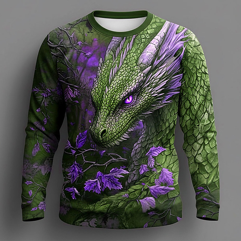 Herren Drache 3D T Shirt Langarm T-Shirt 3D-Druck Rundhalsausschnitt Hemd Mode Fantasie Straße Lässig Täglich Wasserblau Gelb Grün Sommer Frühling Bekleidung S M L XL XXL XXXL