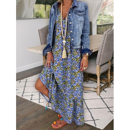 Per donna Abito Midi Vestito Estivo Abito a Tubino Vacanza Casual All'aperto Vestibilità comoda Floreale Grafico Geometrico Senza Maniche Girocollo Blu Cachi Estate Primavera