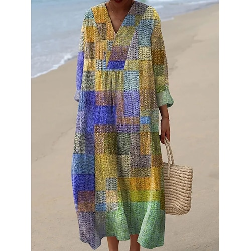 Per donna Abito maxi Abito a Tubino Vestito Estivo Vacanza Casual Spiaggia Uscire Vestibilità comoda Grafico Geometrico Astratto Manica Lunga Scollo a V Blu Rosso Marrone chiaro Rosa / nero Estate