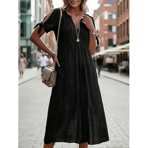 Per donna Abito Midi Abito Bianco Vestito Casual Abito Estivo Elegante Moda Moderno Casuale Quotidiano All'aperto Vestibilità comoda Semplice Manica Corta Scollo a V Blu Nero Bianco Verde chiaro