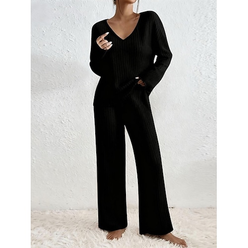Per donna Set di Pantaloni Manica Lunga Scollo a V Tinta unica Moda Streetwear Casuale Quotidiano All'aperto Blu Nero Verde militare Primavera Vestibilità comoda