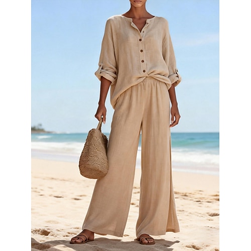 Per donna Set di biancheria in cotone Manica Lunga Colletto a Camicia Tinta unica Elegante Moda Streetwear Casuale Quotidiano All'aperto Nero Viola Arancione Estate Vestibilità comoda