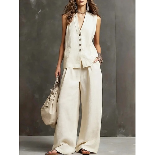 Per donna Set di biancheria in cotone Set di Pantaloni Senza Maniche Scollo a V Tinta unica Elegante Moda Streetwear Casuale Quotidiano All'aperto Blu Nero Bianco Estate Vestibilità comoda