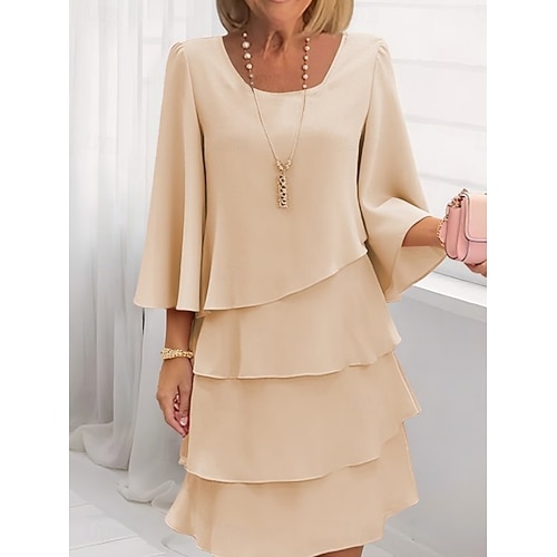 Per donna Mini Abito Vestito Casual Vestito in Chiffon Abito a Strati Elegante Moda Moderno All'aperto Vacanza Uscire Vestibilità comoda Semplice Mezza Manica Girocollo Rosa Rosso Cachi Estate