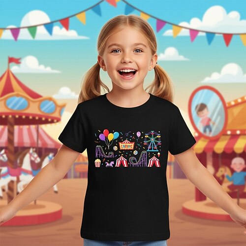 100% Cotone Costume di Carnevale 2026 Bambini Ragazze Blu Nero Bianco Grafico Maglietta Girocollo Manica Corta Vacanza Sport Outdoor Abbigliamento Quotidiano Vacanza Sport Casual Stampa Estate