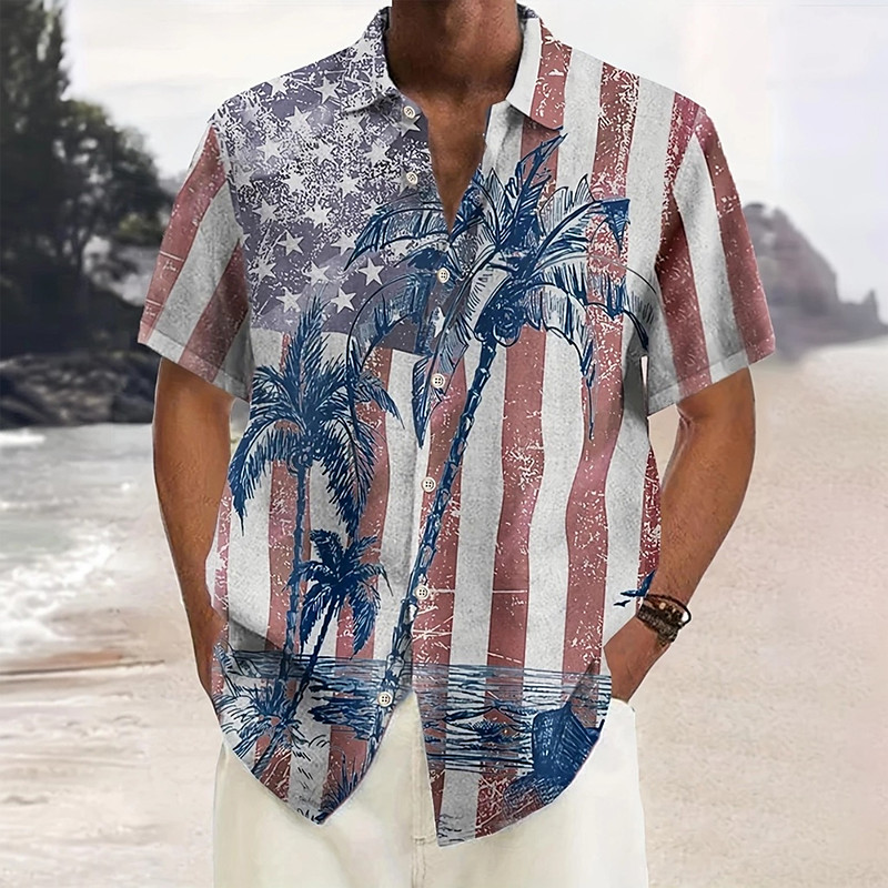 Men's Coconut Tree American US Flag Tropical Plants Casual Shirt Summer Hawaiian Shirt Button Up Shirt Short Sleeve Hawaiian Resort Vacation Beach Wear Summer Spring Turndown 3D Print Collared Shirts