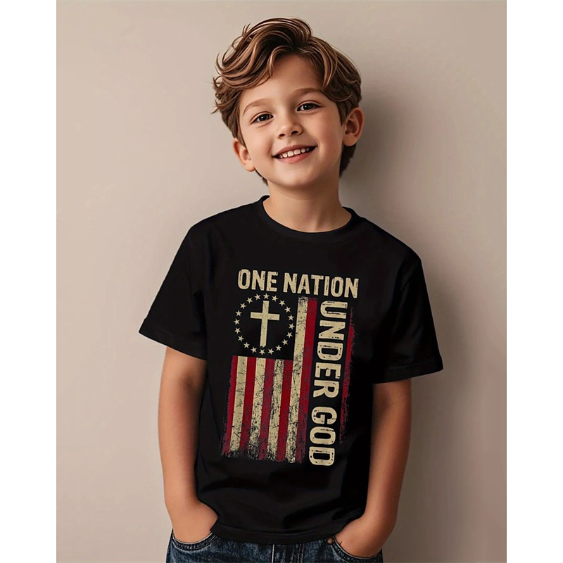 American Independence Day Boys' 3D Graphic Flag T shirt Tee Short Sleeve Summer Spring Fashion Basic Kids 4-12 Years Crew Neck Outdoor Casual Daily Regular Fit