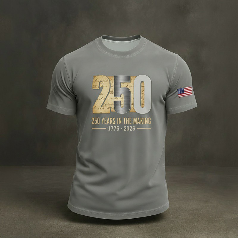 US America 250 Year Anniversary Patriotic T Shirts For Men Letter American Flag Soldier T Shirt Tee Top 100% Cotton Short Sleeve Graphic Shirt Black Dark Blue Comfortable Tee Street Sports