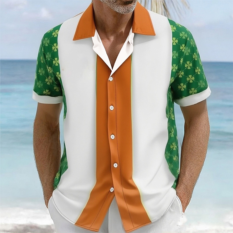 Men's Tropical Plants National Flag Shirt Summer Hawaiian Shirt Aloha Shirt Short Sleeves Shirt Turndown Sports Fashion Streetwear Outdoor Street Casual Red Blue Green S M L