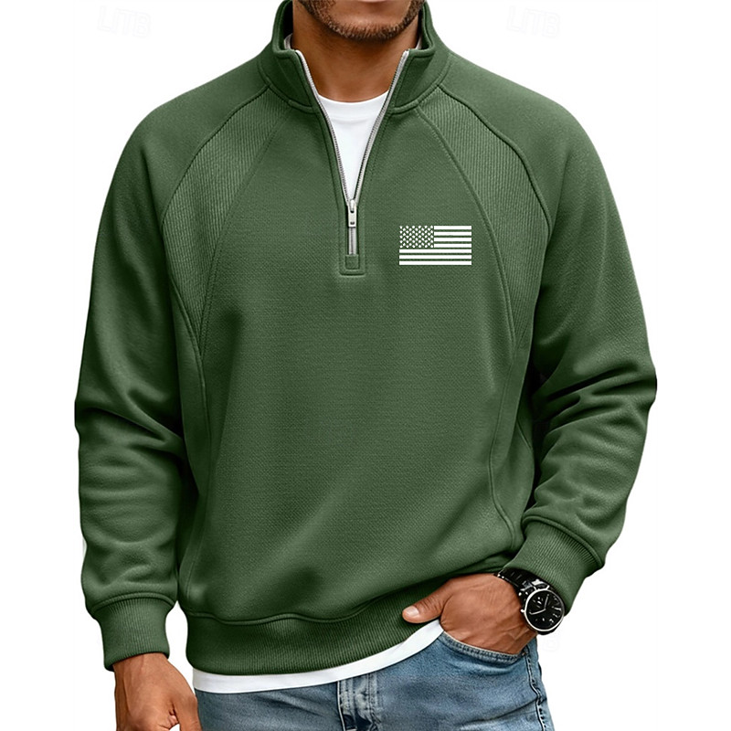 Men's Hoodie Pullover Quarter Zip Hoodie Blue Black Wine Navy Blue Camel Hooded American US Flag Pocket Print Daily Sports Outdoor Sports Streetwear Sportswear Casual Fall Winter Clothing Apparel