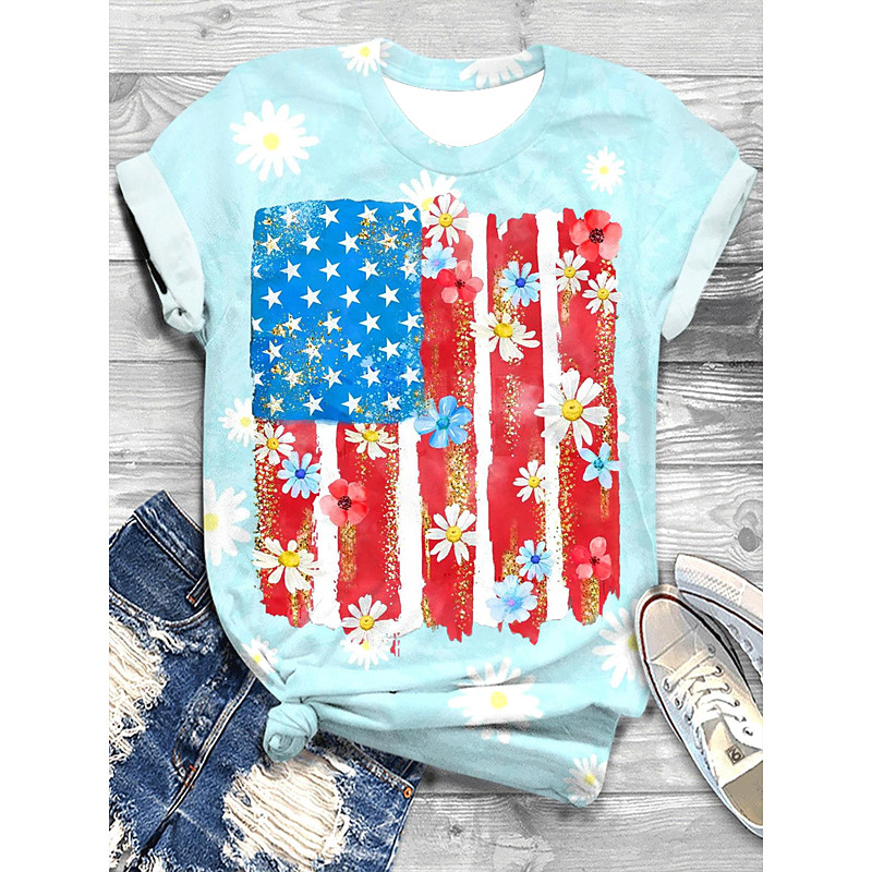 American Independence Day Women's T Shirt Graphic American Flag Vintage Stylish Casual Short Sleeve Crew Neck Regular Tops Daily Weekend Print Blue White Red Royal Blue Sky Blue Summer Spring