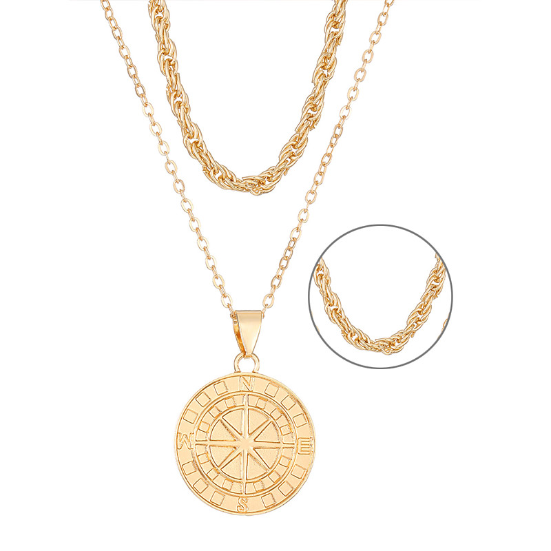 Men's Vintage Compass Pendant Necklace – Alloy Metal Double-Layer Chain, Nordic Viking Amulet, Nautical Jewelry for Travel Adventure