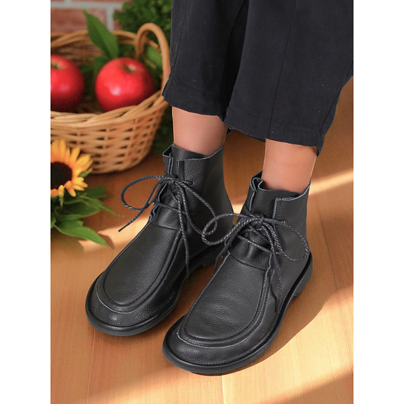 Women's Black Genuine Leather Ankle Boots with Lace Up Design – Casual Durable Cowhide Shoes for Work, Travel and Everyday Outfits