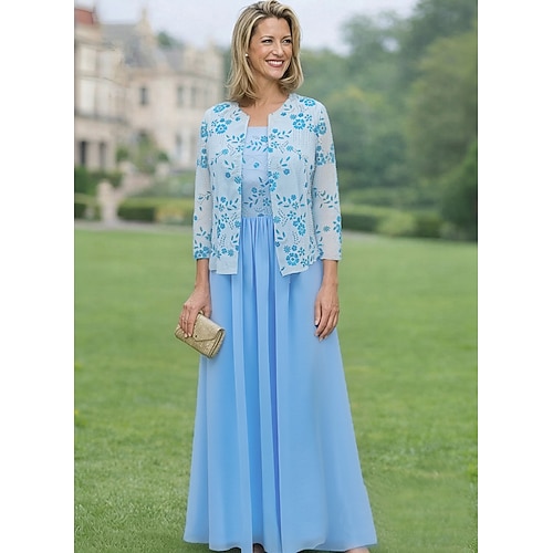 Due Pezzi Linea ad A Lunghezza al pavimento Abito da invitata a nozze Abito da cerimonia per signora Senza Maniche Manica 3/4 Collo quadrato Elegante Semplice Minimalista Formale Ospite di nozze