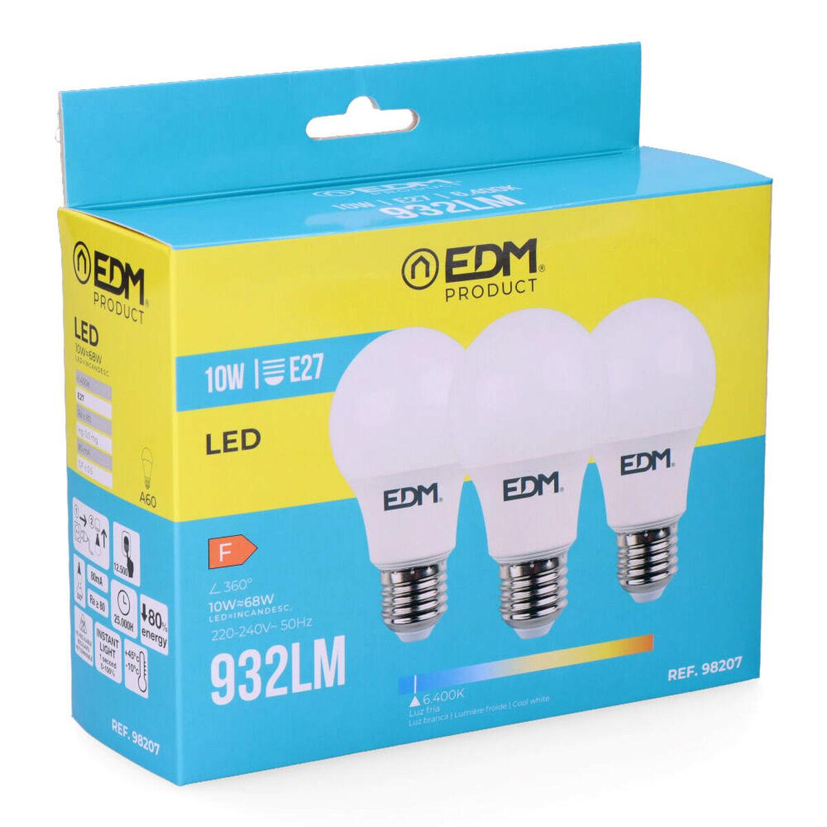 EDM Pakke med 3 LED-pærer E27 10 W, 6.400 K (F) - 932 lm