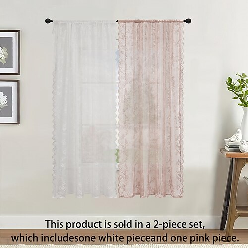 Tende trasparenti in pizzo bicolore da 2/4 pezzi, pizzo jacquard con tasca per asta, tende per finestre eleganti e filtranti la luce, tende di lusso già pronte per l'arredamento della casa