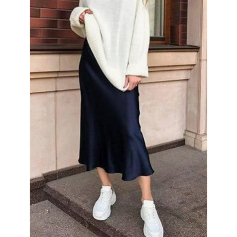 Women's Skirt A Line Elegant Fashion Casual Midi High Waist Skirts Plain Inelastic Street Daily Blue Wine Black White Spring Satin Polyester