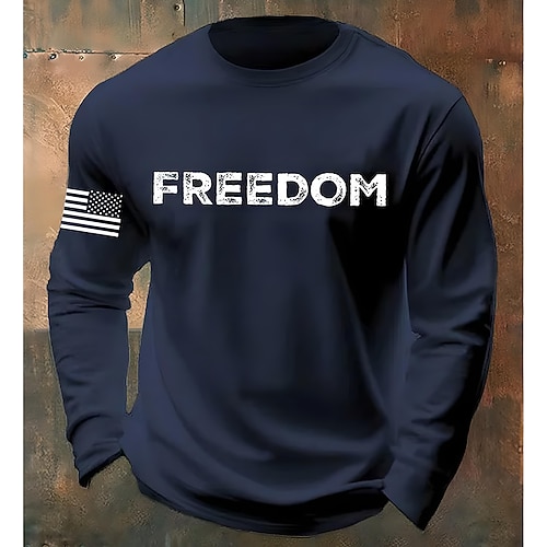 Herren Buchstabe Amerikanische Flagge T-Shirt Langarm T-Shirt 3D-Druck Rundhalsausschnitt Hemd Mode Designer Lässig Urlaub Täglich Ferien Schwarz Weiß Marineblau Ganzjahres Bekleidung S M L XL 2XL 3XL