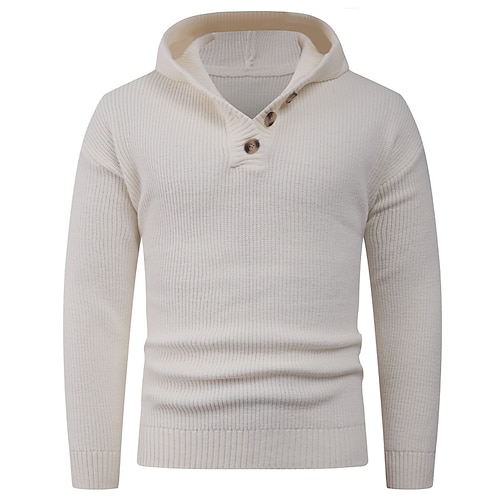Per uomo Maglione Maglione a maglia A Coste Maglia Top Regolari Bottoni Lavorato a maglia Semplice Con Cappuccio Moda Essenziale Vacanza Abbigliamento quotidiano Abbigliamento Autunno Inverno Nero