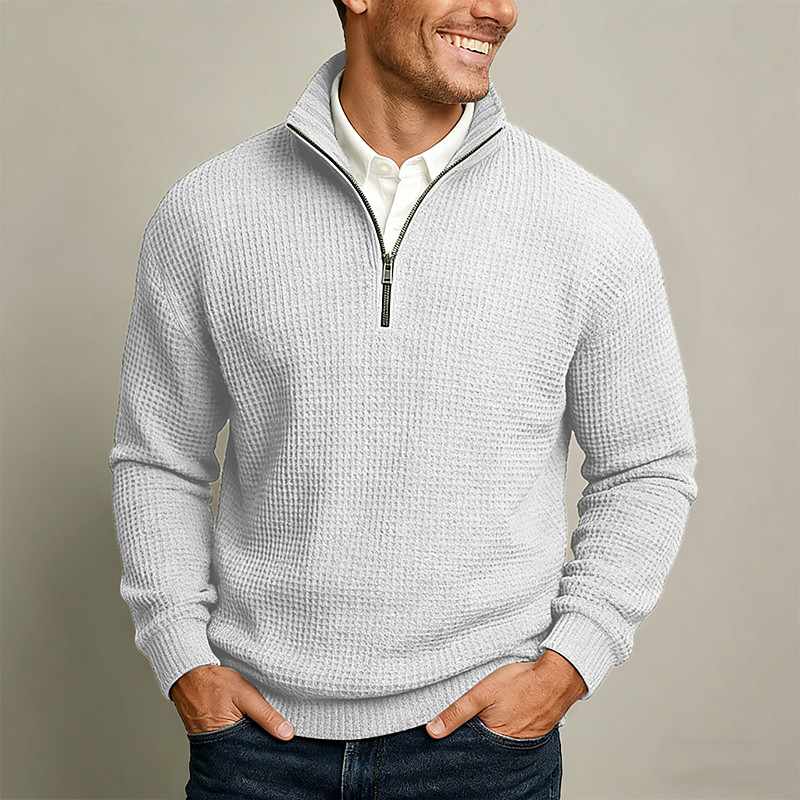 Men's Waffle Polo Shirts Textured Casual Quarter Zip Long Sleeve Fashion Modern Solid Color Textured Knitted Fall Spring Fall Fall Winter Regular Fit White Light Green Navy Blue Dark Green Khaki