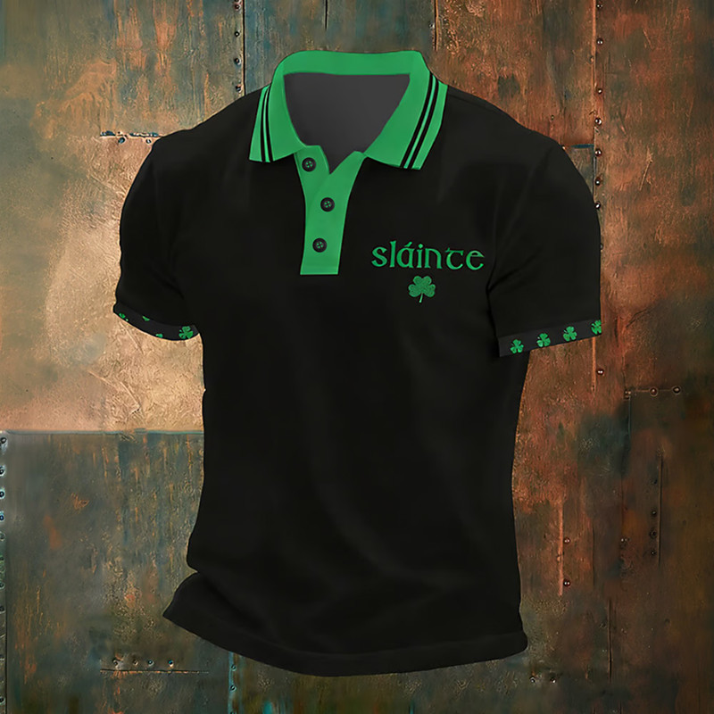 St Patrick's Day Men's Shamrock Polo Shirts Short Sleeve Polo Shirts Collared Shirts Casual Athleisure Festival Wear Buttons Spring Summer Black Light Green Green
