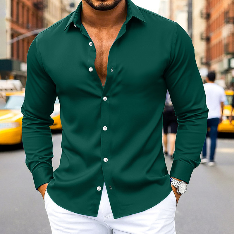 Men's Shirt Satin Shirt Dress Shirt Casual Shirt Button Up Shirt Prom Shirt Plain Wedding Formal Light Blue Black White Red Long Sleeve Lapel All Seasons Clothing Apparel
